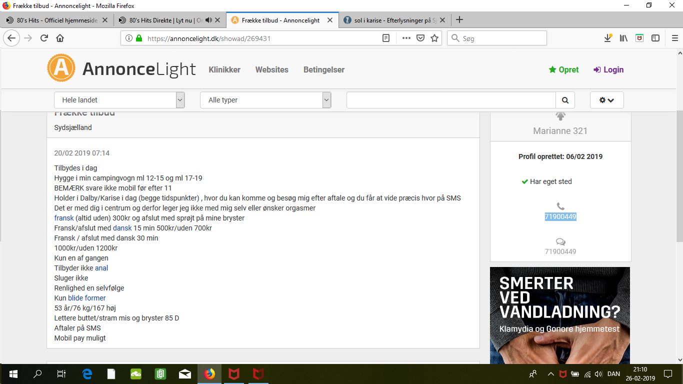 liderlig tyr 5 Skrevet 26. Februar, 2019 der er en dame man kan møde ved solcenter i karise ,man kan sms for aftale, men der er ikke telefonnr , annoncere på annoncelight ,,hvordan komme man iforbindelse med hende, det er også hende man kan møde ved campingvogn ved karise Citér indlæg Del dette indlæg Link til indlæg