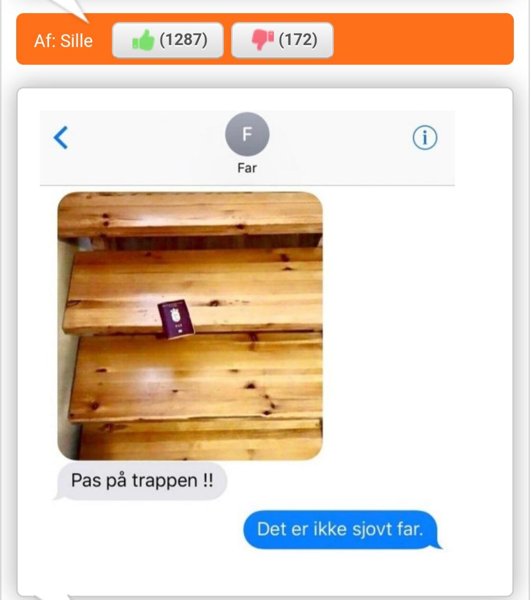 Guest Nemtøs Skrevet 23. Marts, 2020 (edited) MickeyM skrev, for 4 minutter siden: Far vitser? Vitser som er platte og ikke giver den mindste mening - prøv at google https://www.vitser-jokes.dk/far-jokes/ Pas på trappen... lol Redigeret 23. Marts, 2020 af Nemtøs Link Citér indlæg Del dette indlæg Link til indlæg