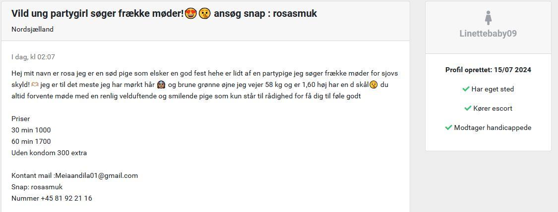 just27fun 81 Skrevet 8. November, 2024 (edited) Nordsjælland og Lolland på samme tid er lidt svært! Og så kniber det åbenbart med at huske vægten, selvom det kun er 3kg. Ikke samme mobil nummer, men samme snapchat. Annoncen med snap rosasmuk er fra d. 28/07-24 https://annoncelight.dk/showad/406687 https://annoncelight.dk/showad/411893 Redigeret 8. November, 2024 af just27fun 2 Citér indlæg Del dette indlæg Link til indlæg