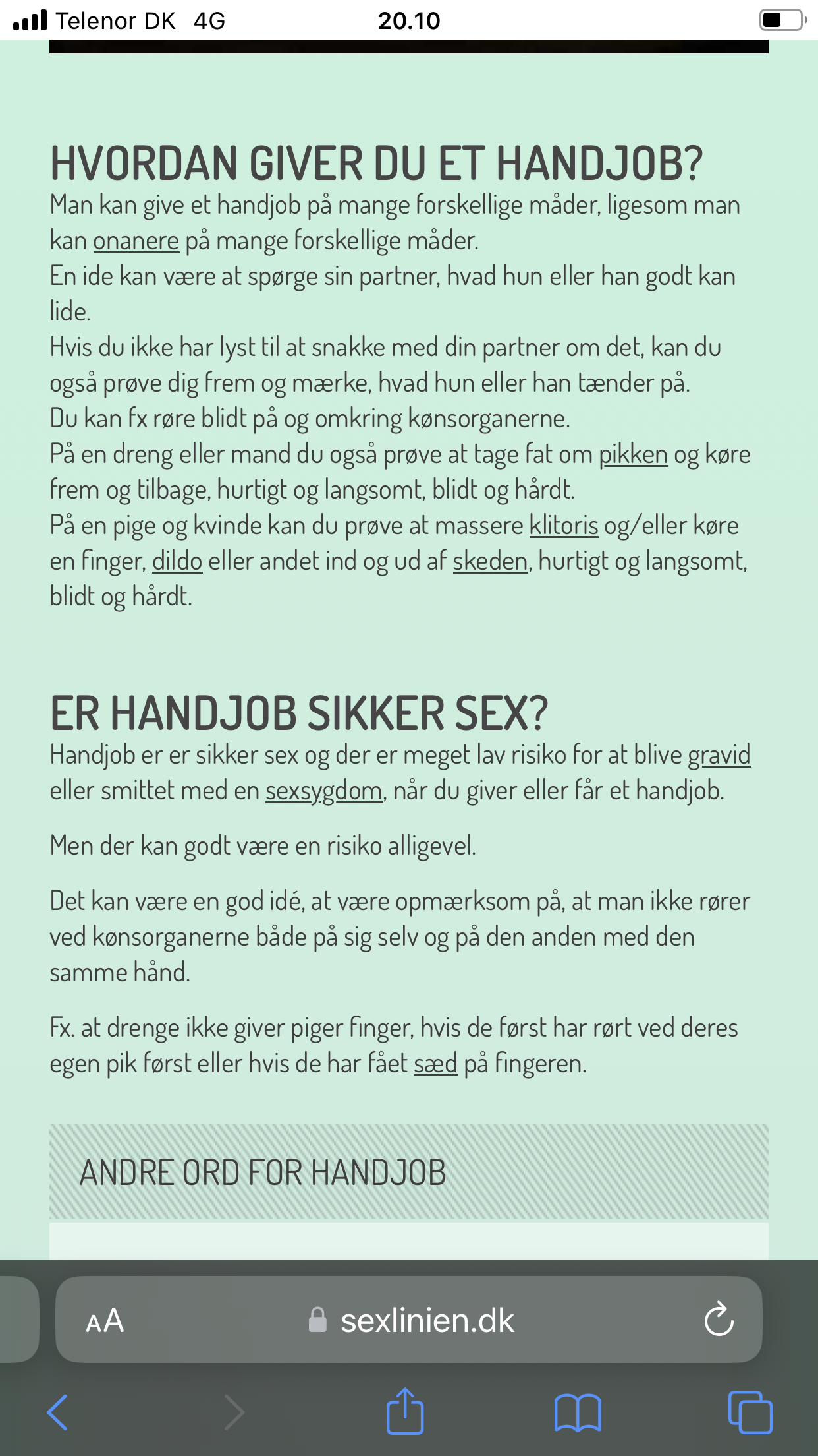 JenniferRomantica 18219 Skrevet 11. December, 2024 (edited) ErnstOle skrev, for 7 minutter siden: Som forventet så kunne du ikke finde en artikel hvor det godtgøres, at en mand kan få klamydia ved at modtage et handjob. Du skrev “ligesom man ikke bliver smittet af at dele håndklæde eller toilet”.. Det bad du mig om at finde en artikel omkring.. Værsgo.. Men ellers så er der da et svar fra sexlinien: Du kunne jo også Google lidt selv hvis du tvivler sådan.. Det kunne være du blev klogere.. Og hvorfor er det lige pludselig blevet til at vi kun snakker om klamydia.? Der er jo andre kønssygdomme der kan give den beskrevne ubehag.. Redigeret 11. December, 2024 af JenniferRomantica Citér indlæg Del dette indlæg Link til indlæg