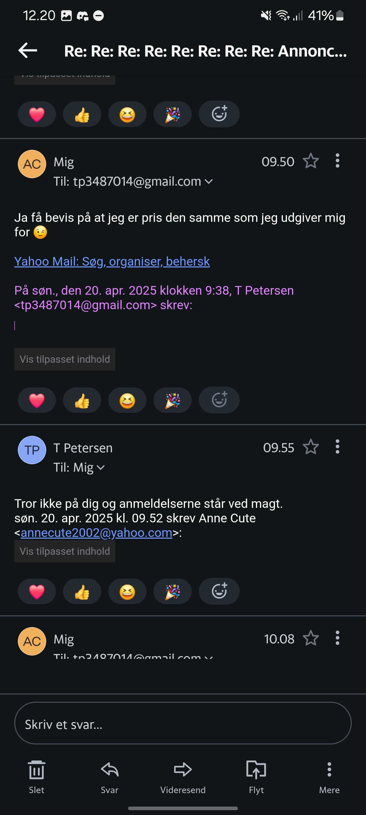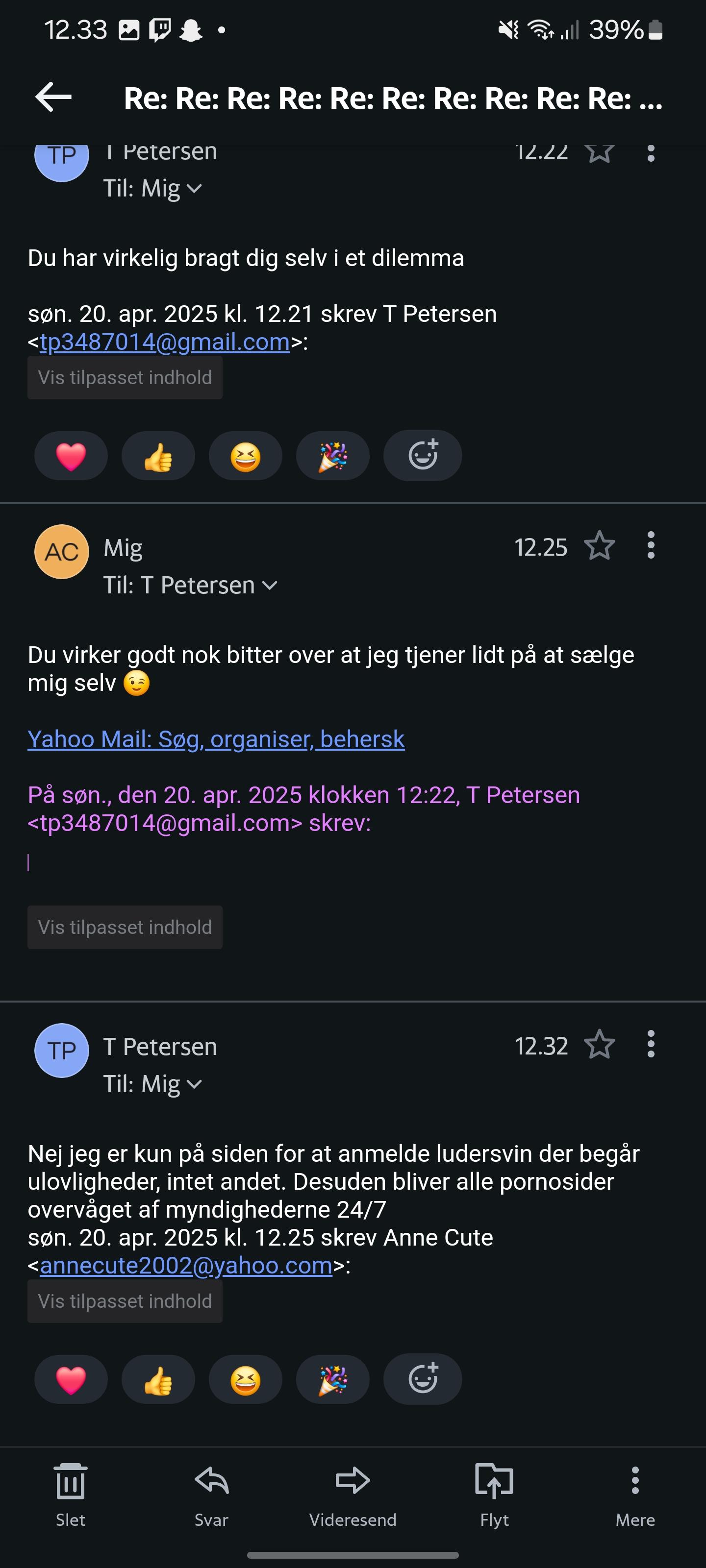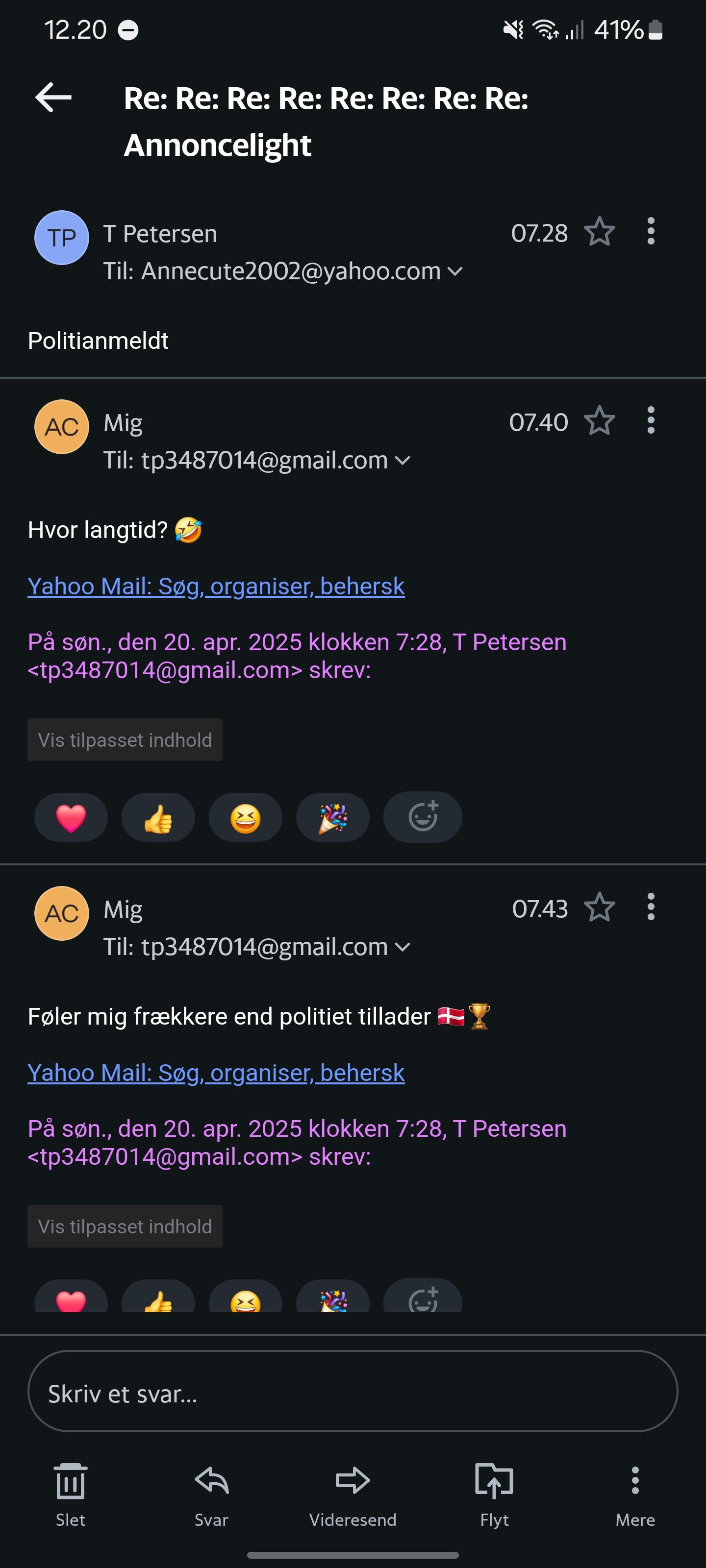 Bear 8101 Skrevet 22. April Er jeg den eneste der sidder med fornemmelsen at T-Pedersen og AnneCute er den samme person? I så fald er han nu nået til et punkt hvor han chikanerer sig selv for at få opmærksomhed 2 Citér indlæg Del dette indlæg Link til indlæg