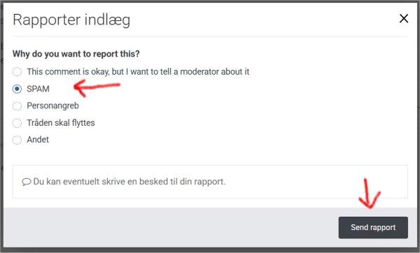 Julius 1508 Skrevet 22. November, 2025 Jo flere der rapporterer den enkelte bruger, desto hurtigere bliver spammere lukket ned, citat Stapler. Sådan rapporterer du: Hvis du kører musen hen over et indlæg, får du mulighed for at rapportere i øverste højre hjørne. Klik på Rapporter indlæg, og du får en menu frem, hvor du så markerer SPAM - eller hvad du ønsker at rapportere. Tryk så til sidst på "Send rapport" Jeg ved ikke, hvordan det er på tlf. Måske kan en anden forklare det. 1 2 Citér indlæg Del dette indlæg Link til indlæg