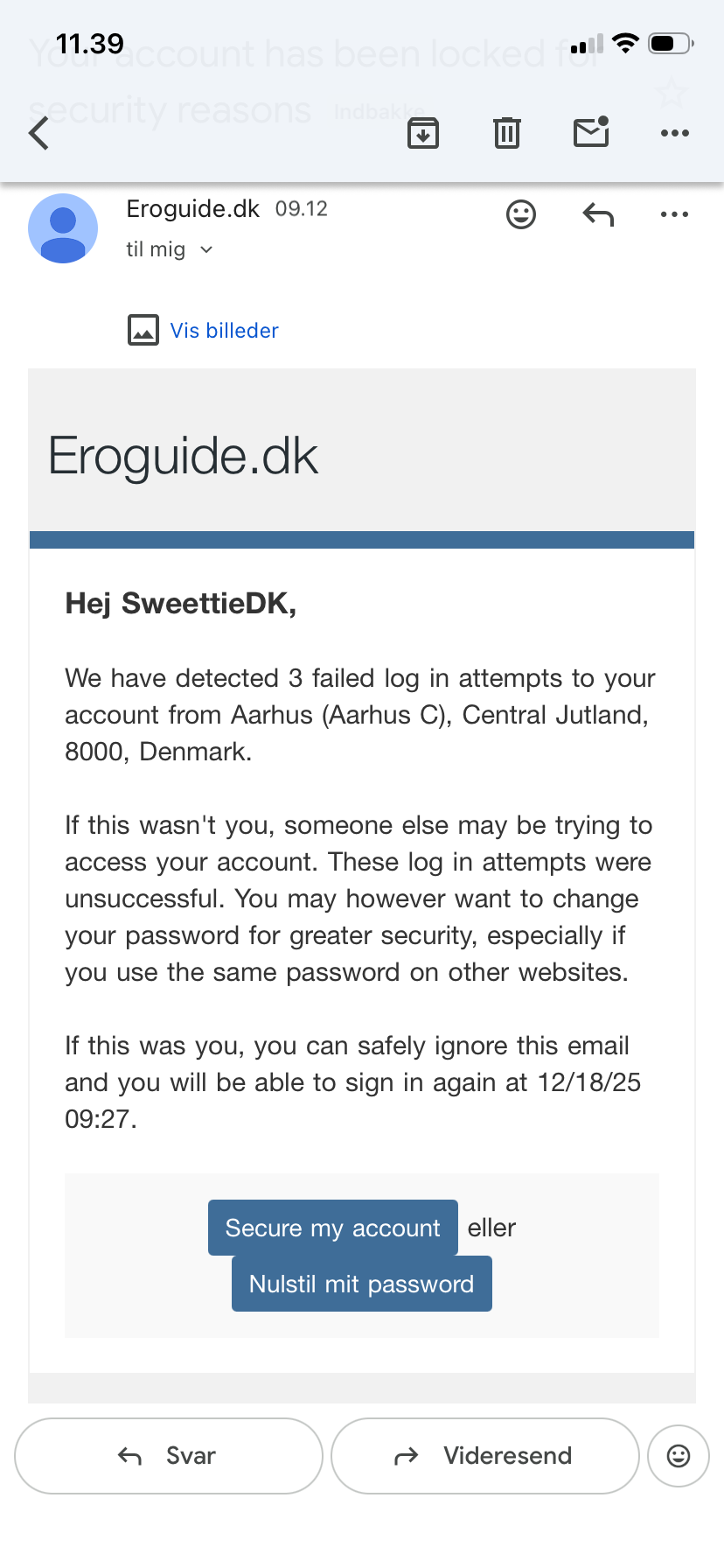 Modtog en mail i dag om for mange forkerte login forsøg.